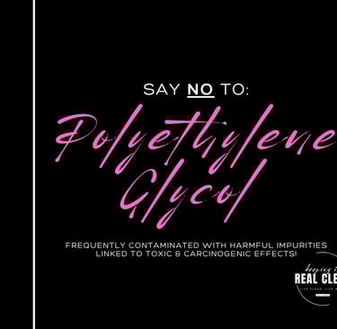 Polyethylene glycol (PEG) compounds are petroleum-based ingredients commonly used as thickeners, softeners, & moisture carriers in personal care products. Unfortunately, PEGs are often contaminated with harmful impurities during manufacturing which are linked to toxic & carcinogenic effects!